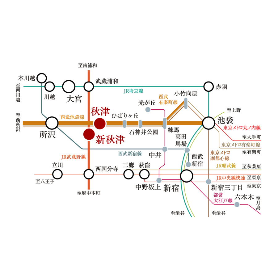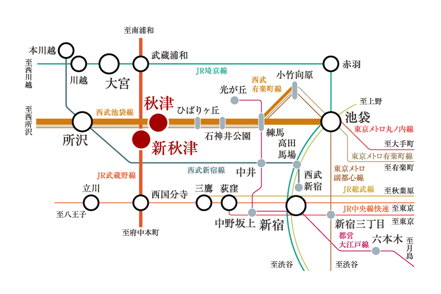 ◆JR武蔵野線「新秋津」駅まで徒歩9~10分、西武池袋線「秋津」駅まで徒歩13分