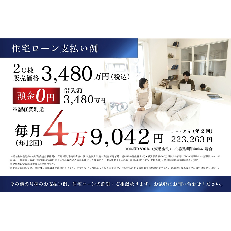 その他号棟のお支払い例、住宅ローンの詳細・ご相談承ります。お気軽にお問い合わせください。