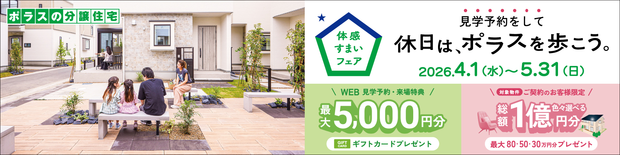 ポラスの魅力 様々な個性に溢れる 街並みデザイン ポラスの魅力へ ポラスがデザインする街並みは地域のランドマークとなるような美しい景観です。住んでいるだけで楽しくなるような街並みをデザインします。そして、住む人のことを考えた「暮らしやすい」環境、地域に根ざした愛着が持てるような街づくりを目指しています。