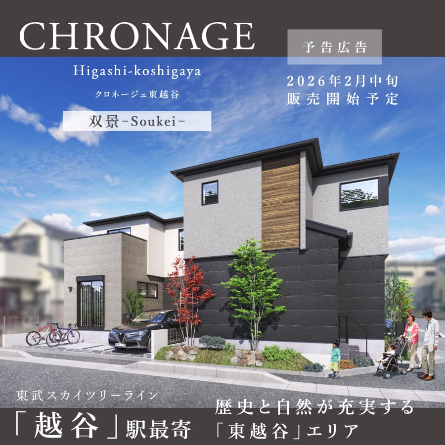 【予告広告】2026年2月中旬販売開始予定◆東武スカイツリーライン『越谷』駅最寄◆JR武蔵野線『越谷レイクタウン』駅までバス16...