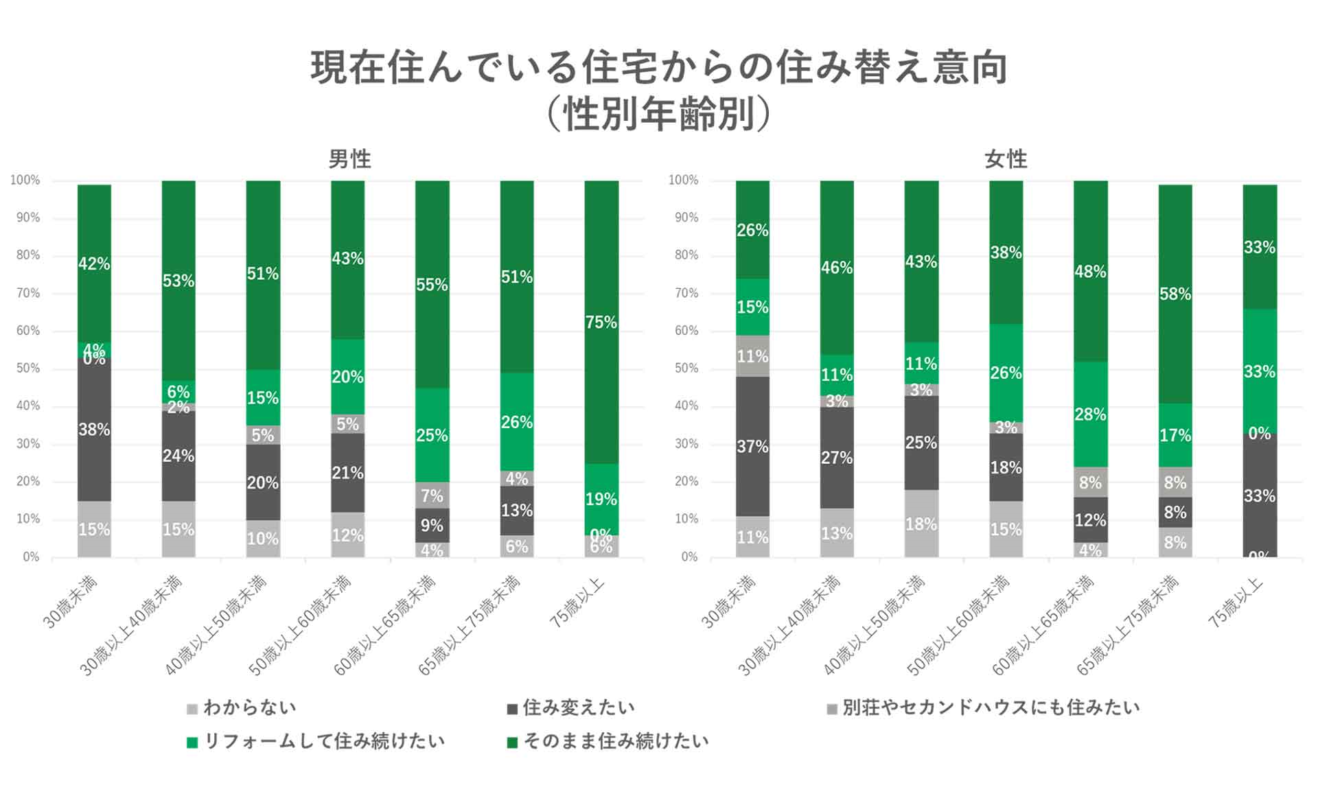 実際に、国土交通省が2014年に行ったモニター調査では、年齢が上がれば上がるほど、「リフォームして現在の家に住み続けたい」という結果が出ています。