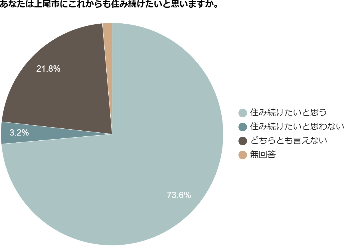 「上尾市にこれからも住み続けたいか」という質問に対し、こちらも「住み続けたいと思わない」と答えた人は3%ほどで、70%を超える人は「住み続けたいと思う」と答えています。