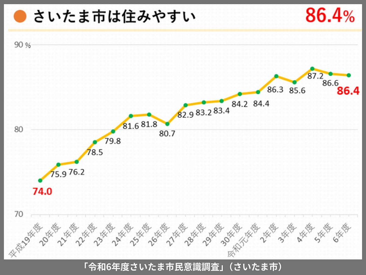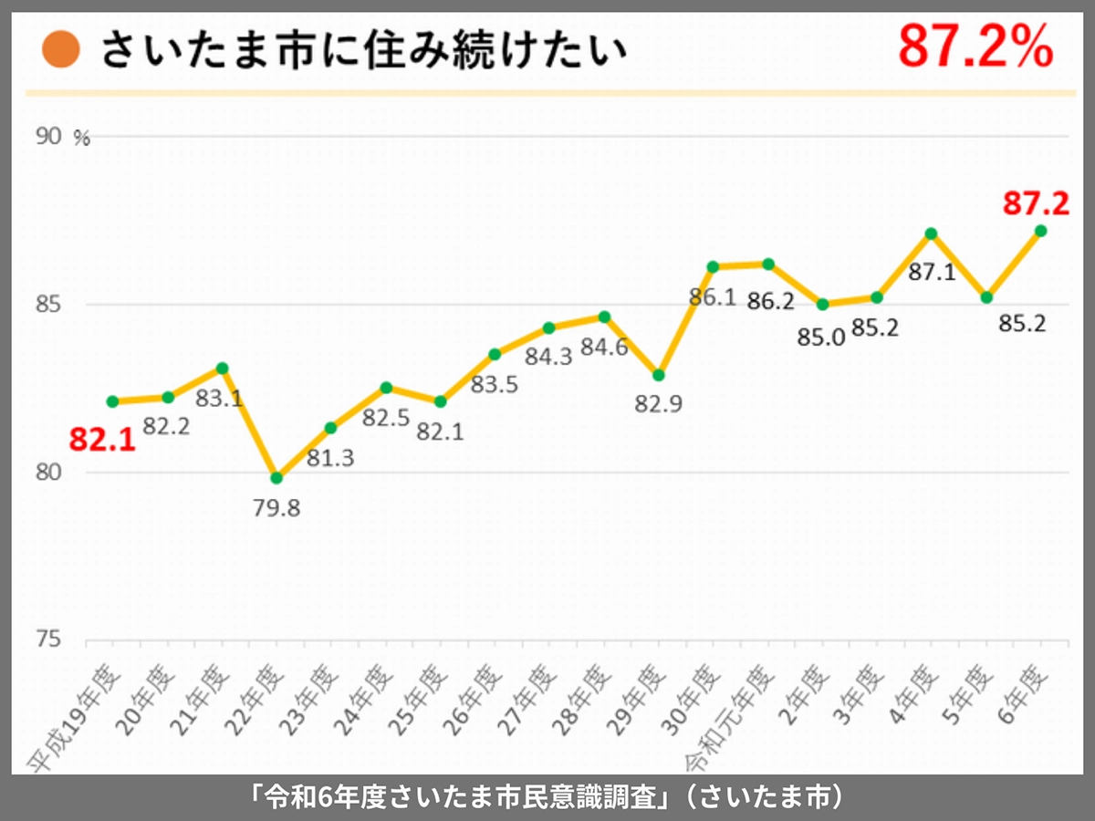 また、「令和6年度のさいたま市民意識調査」では市民の約85%が「住みやすい」・「住み続けたい」と回答しています。