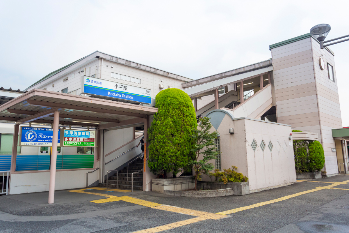 小平駅は、小平霊園の玄関口、西武鉄道新宿線・拝島線の急行・準急・拝島ライナーが停まる駅で、新宿まで急行で30分以内と通勤圏内に位置し、住宅が広がるベッドタウンです。都心に通勤・通学で利用する人と山崎製パン武蔵野工場へ通勤する人たちが駅を利用し、1日3万人が乗降しています。大学や学校が多く、樹木の生い茂る小平グリーンロードは市民の憩いの場として親しまれています。