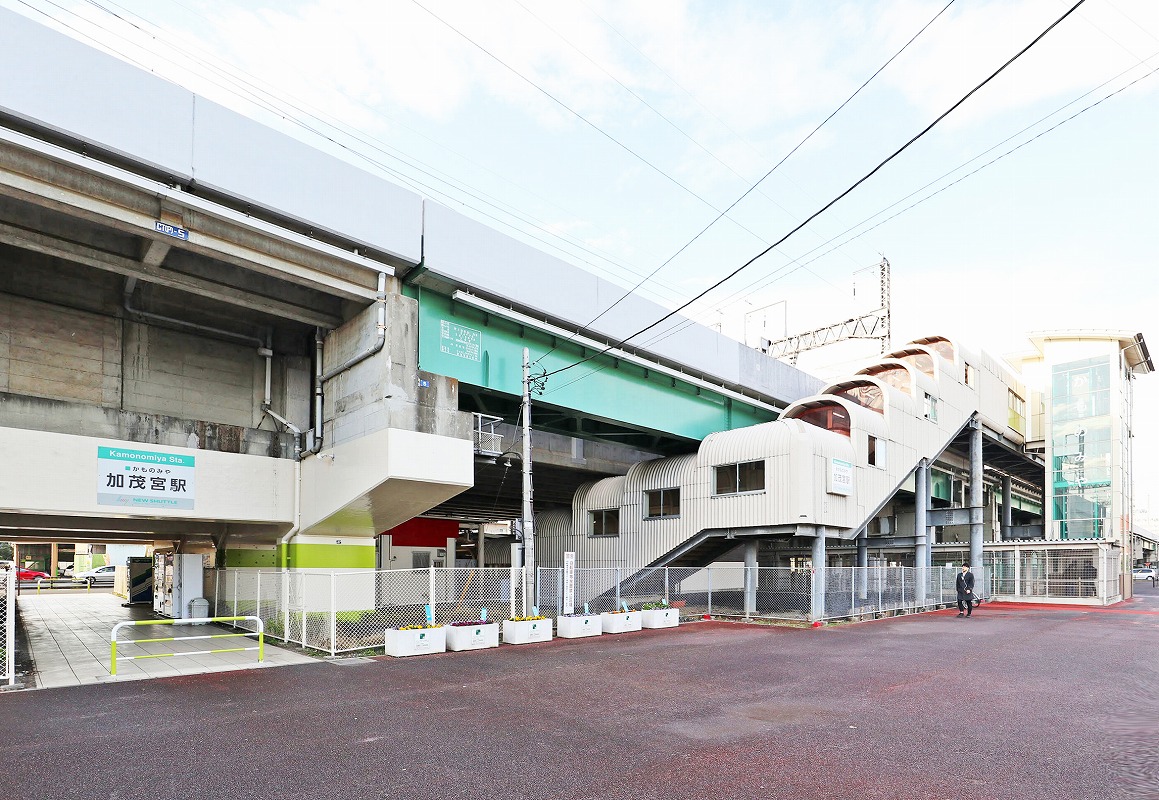 加茂宮駅は、大宮駅から2つ目の駅。駅は高架駅で、JR東北・上越新幹線の軌道を挟んで線路があり、車窓からの眺めは抜群です。駅周辺には整備された住宅街が広がり、マンションや戸建てが多くファミリー層が暮らします。買い物に便利なショッピングモール「ステラタウン」もあります。