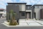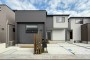 スタイリッシュな寄棟屋根とシックな色調を纏ったモダンで重厚なファサード。通り抜けができないプランニングで住人だけのプライベートが保たれた暮らしを実現しました。それぞれの住戸に特徴を持たせながらも、全体をブラックのサッシで統一することで一体感を演出し、6m道路とオープン外構が分譲地内に解放感をもたらしています。ランダムに並べたアクセントポールとシンボルツリーが青空に映え、潤いを感じられる街並みに仕上げました。
