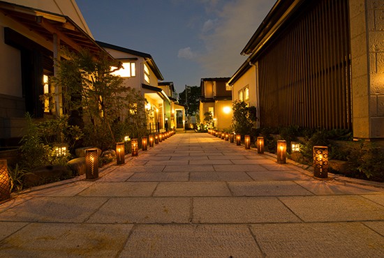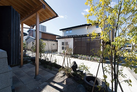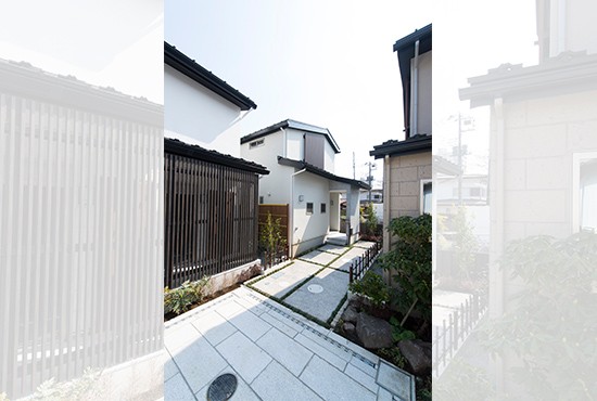 「蔵」と共に暮らす、歴史と伝統の香りが漂う旧日光街道をすぐそこに感じる4邸の家。 2015年度グッドデザイン賞受賞(住宅住空間部門)。それぞれの家が異なる和の世界観を持ち、蔵と融合しながら情緒豊かな街の風景をつくり上げています。御影石が敷きつめられた路地も一翼を担っており、電線や電柱が見当たらなく「空が広い」です。日没後に各邸の街灯が自動的に点灯する「灯かりのいえなみ協定®」を実施しています。これにより防犯的な効果を高めながら、街全体を優しくライトアップしていくことで幻想的な美しさが広がり、昼間とは違った表情を見せてくれます。