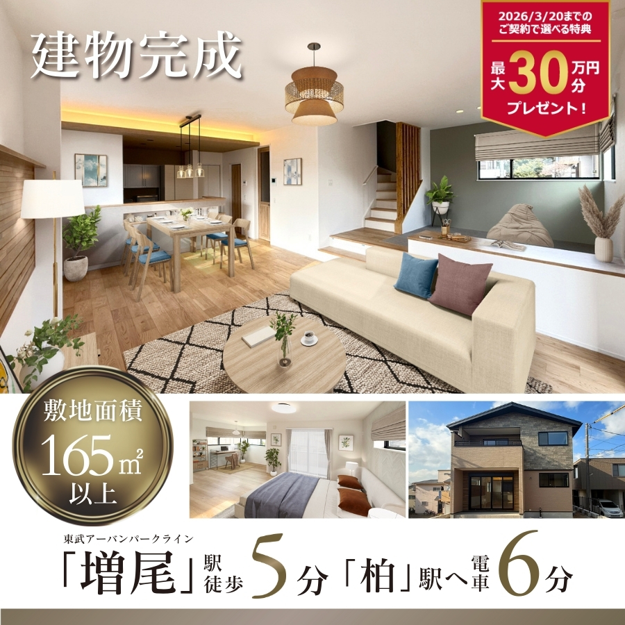 【成約特典:30万円分対象】【建物完成】柏市に誕生する駅近新築戸建て◆東武アーバンパークライン「増尾」駅まで徒歩5分◆増尾...
