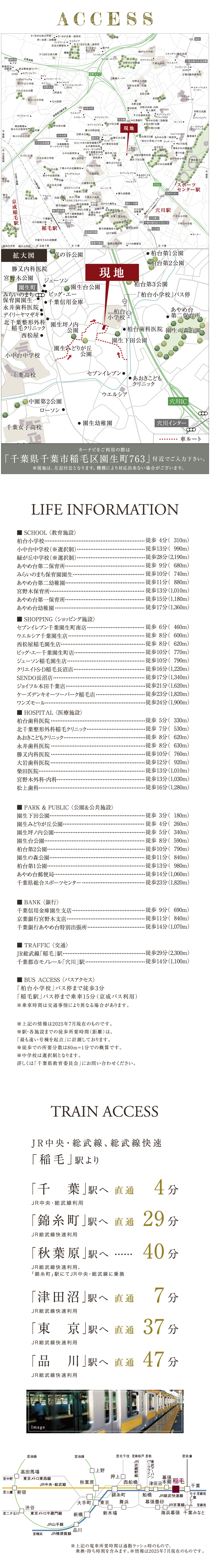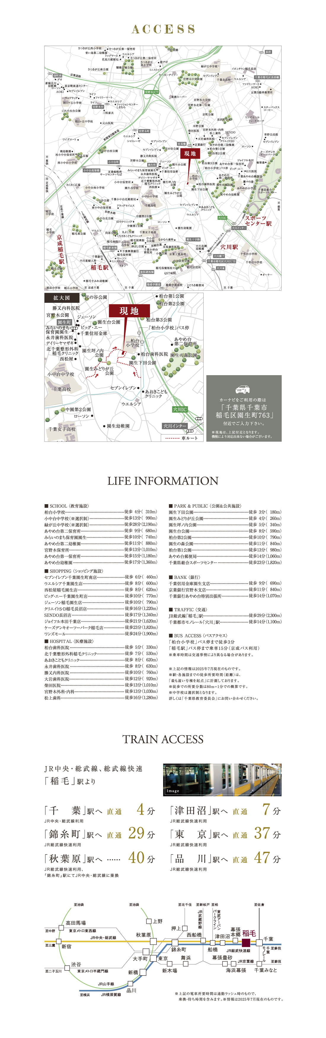 JR総武線「稲毛駅」まで自転車9分(実測)。