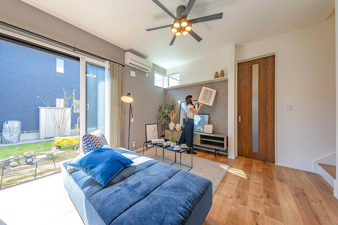 ■1F天井高さ2.7m、掃き出し窓2.2mの開放感