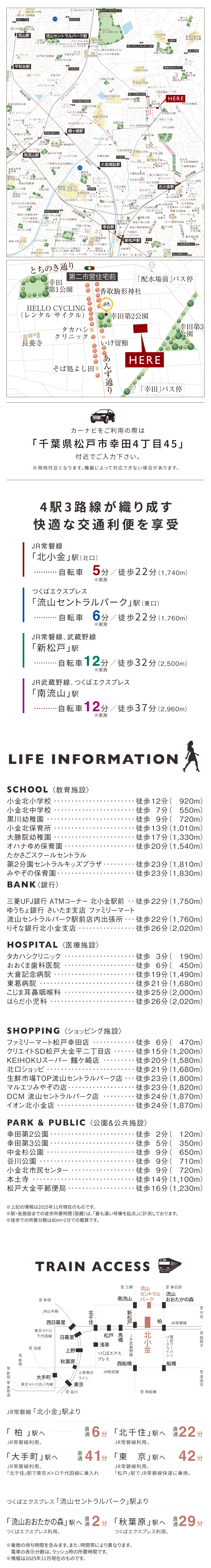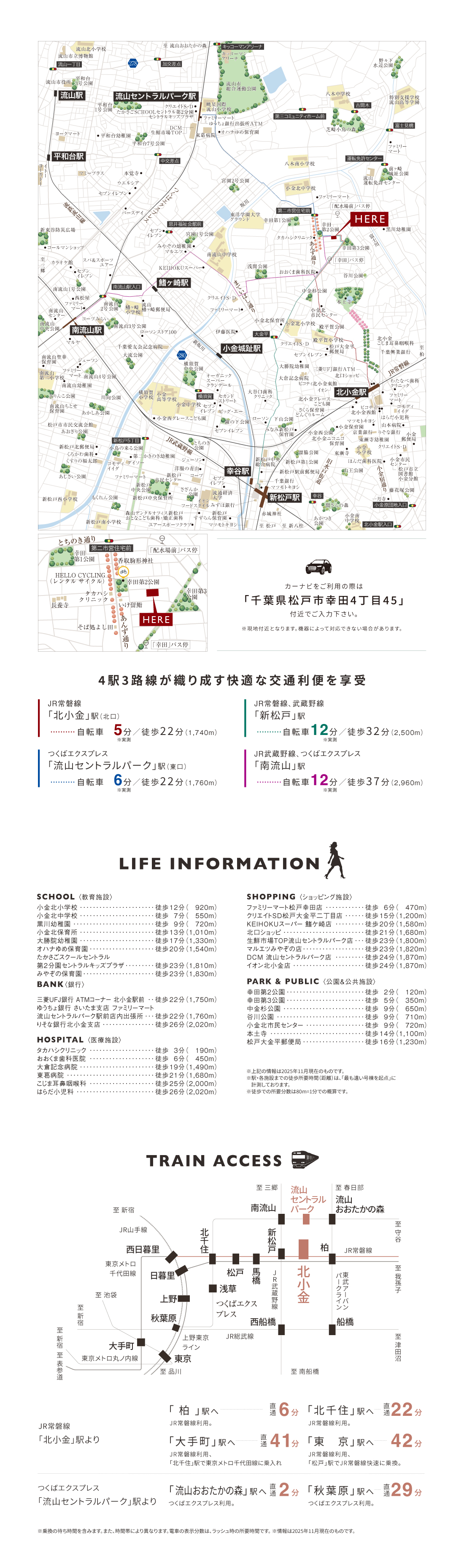 つくばエクスプレス「流山セントラルパーク駅」まで自転車6分(実測) 。