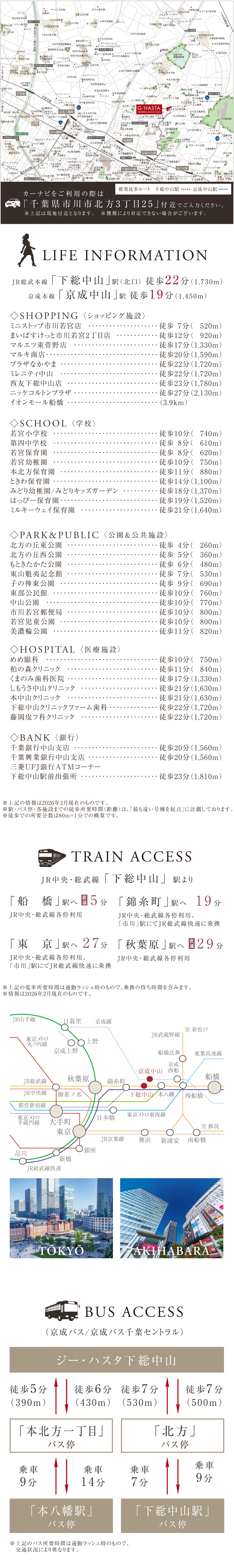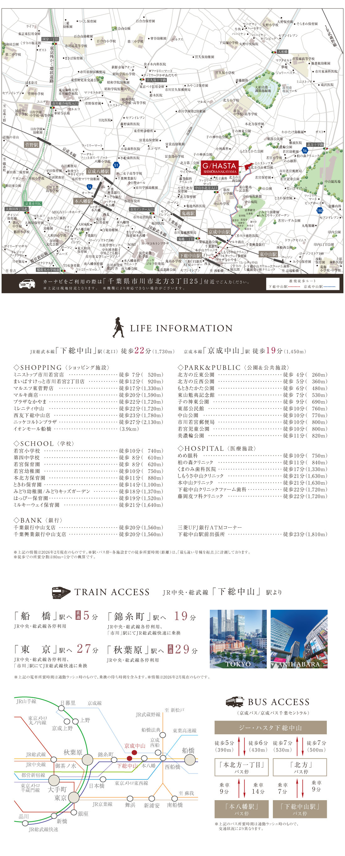 「下総中山」駅徒歩20~22分/自転車7分(実測)