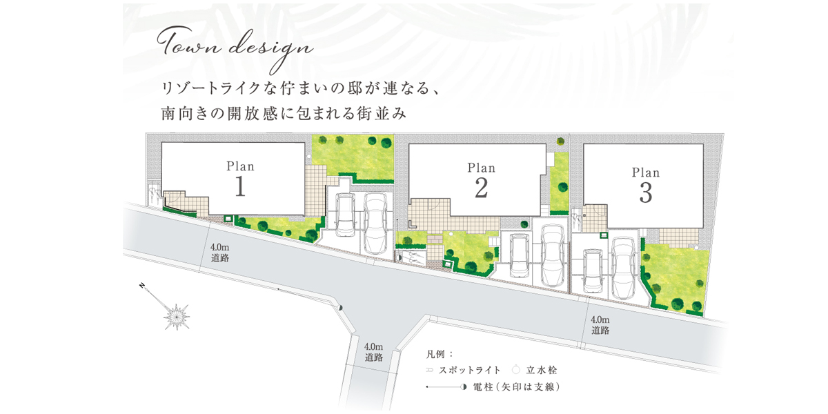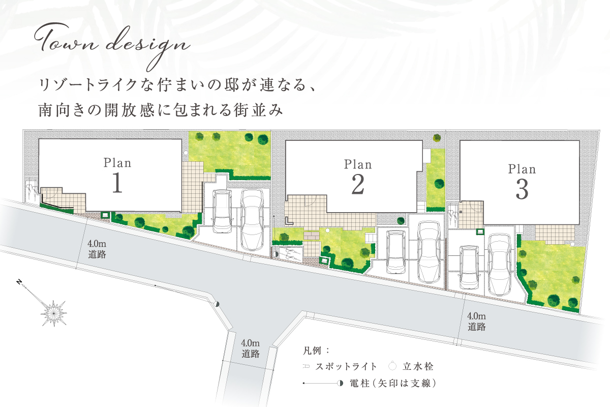 ◆日当たりに恵まれた南道路に面したリゾートライクの全3邸。