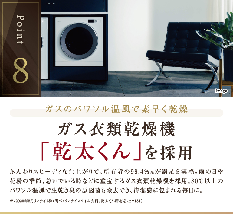 ◆ガス衣類乾燥機「乾太くん」や食器洗い乾燥機などの快適設備で家事を時短