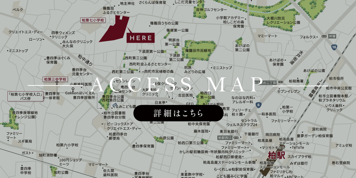 ◆「柏」駅まで自転車8分(実測)・「柏の葉キャンパス」駅まで自転車12分(実測)・3640m。柏駅利用で「東京」駅まで直通34分のダイレクトアクセス