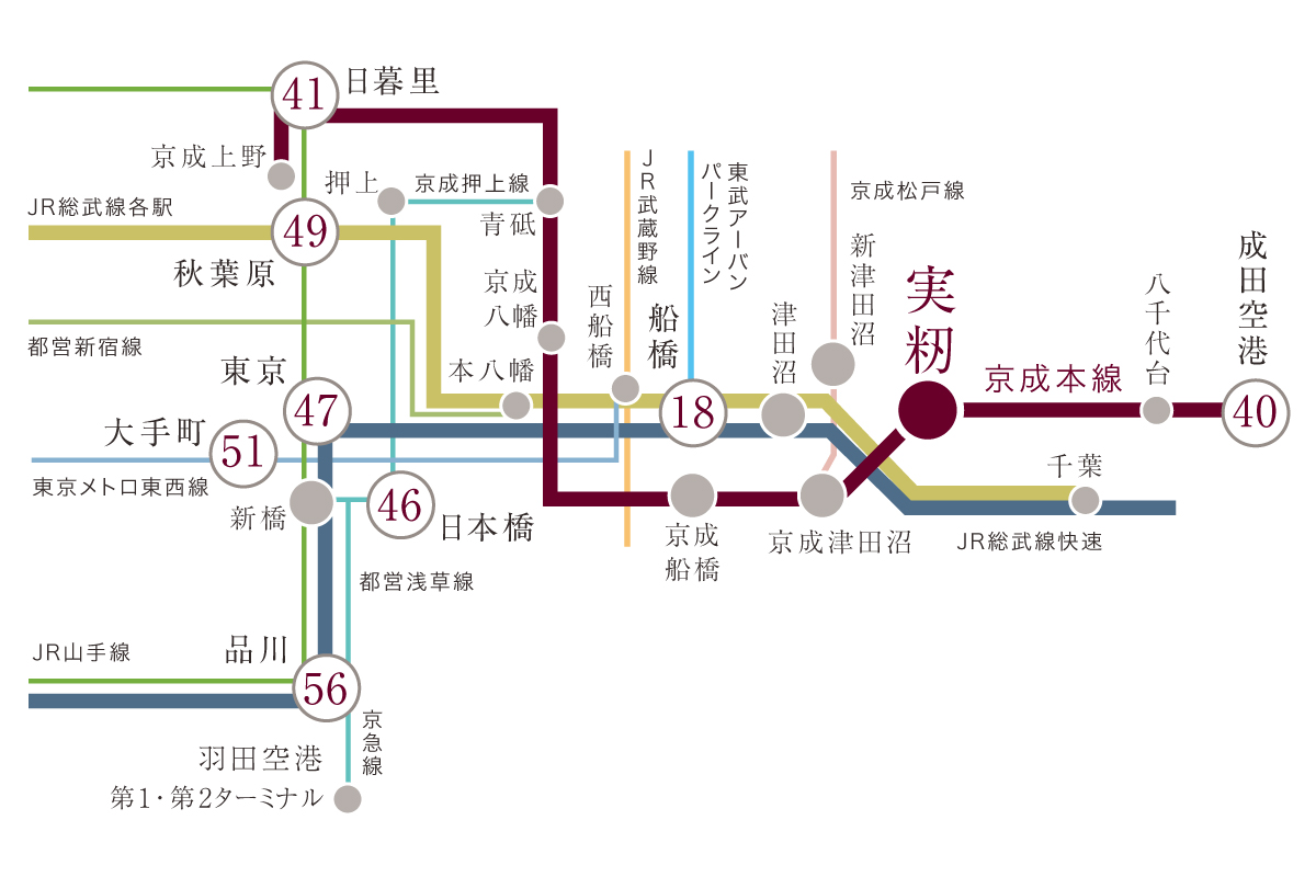 アクセス ●実籾駅より船橋駅まで【ラッシュ時: 18分 京成本線(京成上野行)利用。京成船橋駅から徒歩。】