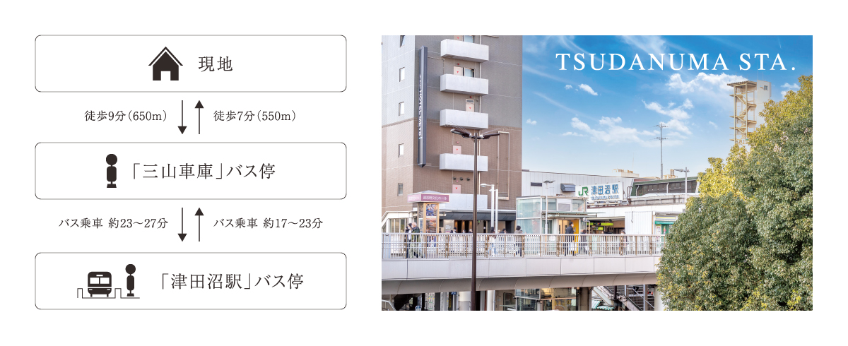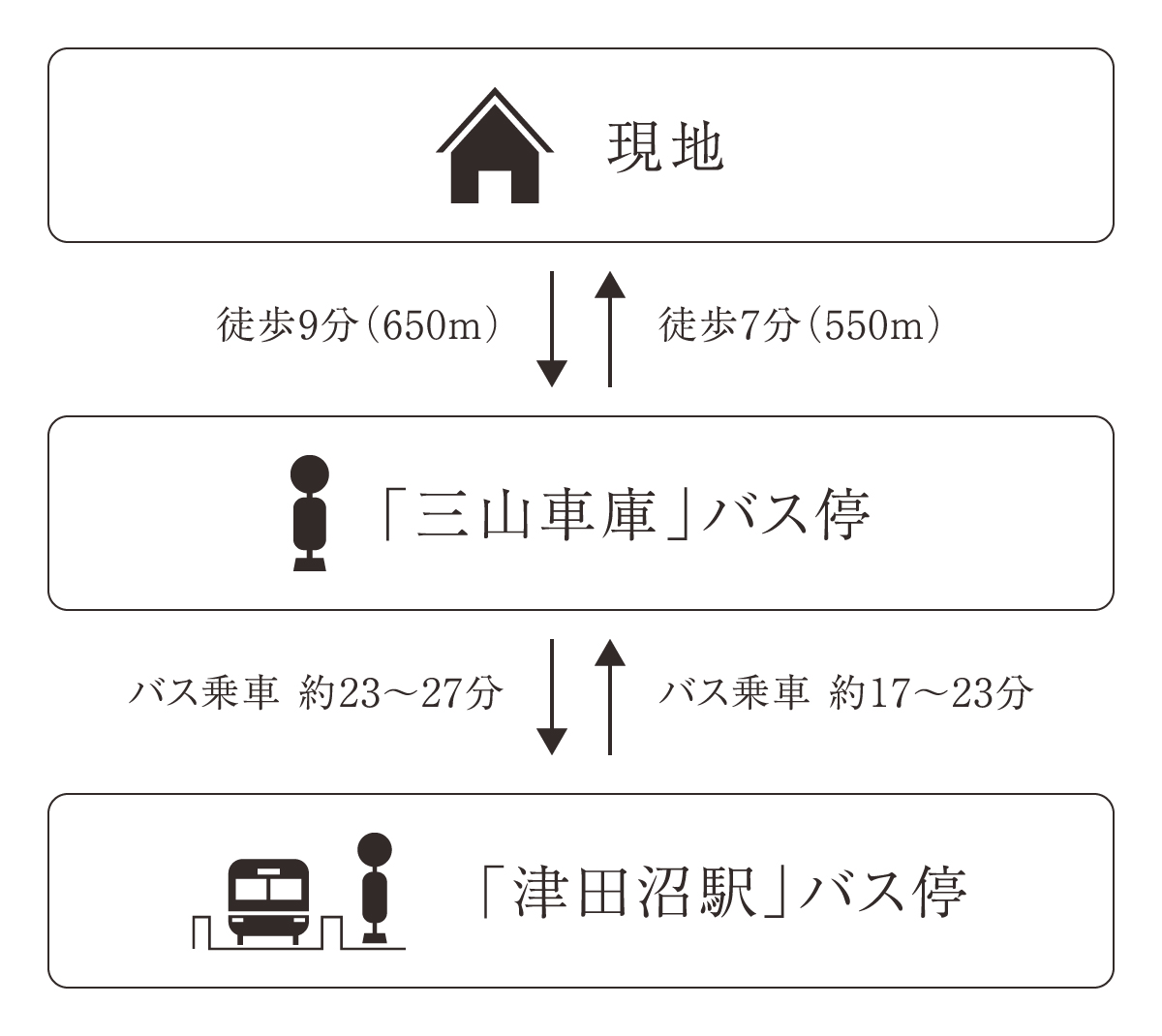 ※バス停までの徒歩所要時間(距離)は、「最も遠い号棟を起点」に計測しております。