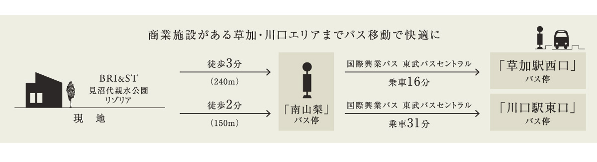 ※バスの乗車時間は平日朝のラッシュ時のもので時間帯・道路状況により異なります。