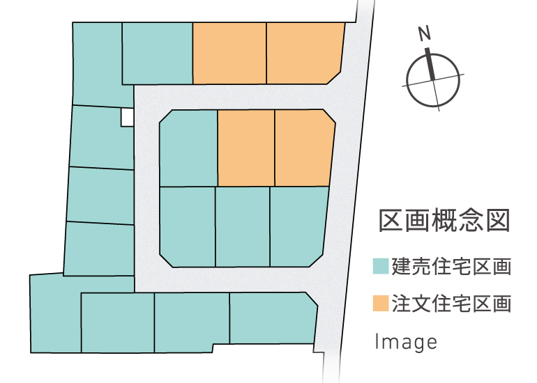 注文住宅が4区画分、建売住宅が13区画分となったわけですが、きちんとひとつの街のように区割りされていますね。