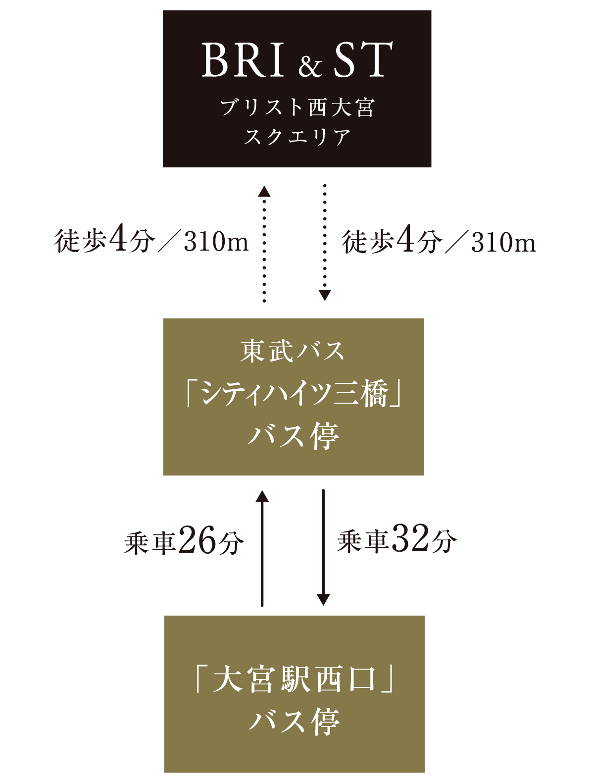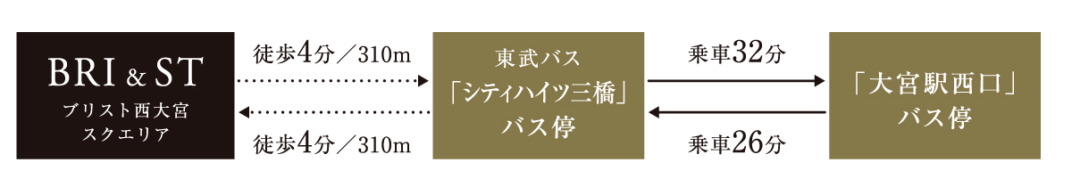 ※バスの乗車時間は平日朝のラッシュ時のもので時間帯・道路状況により異なります。
