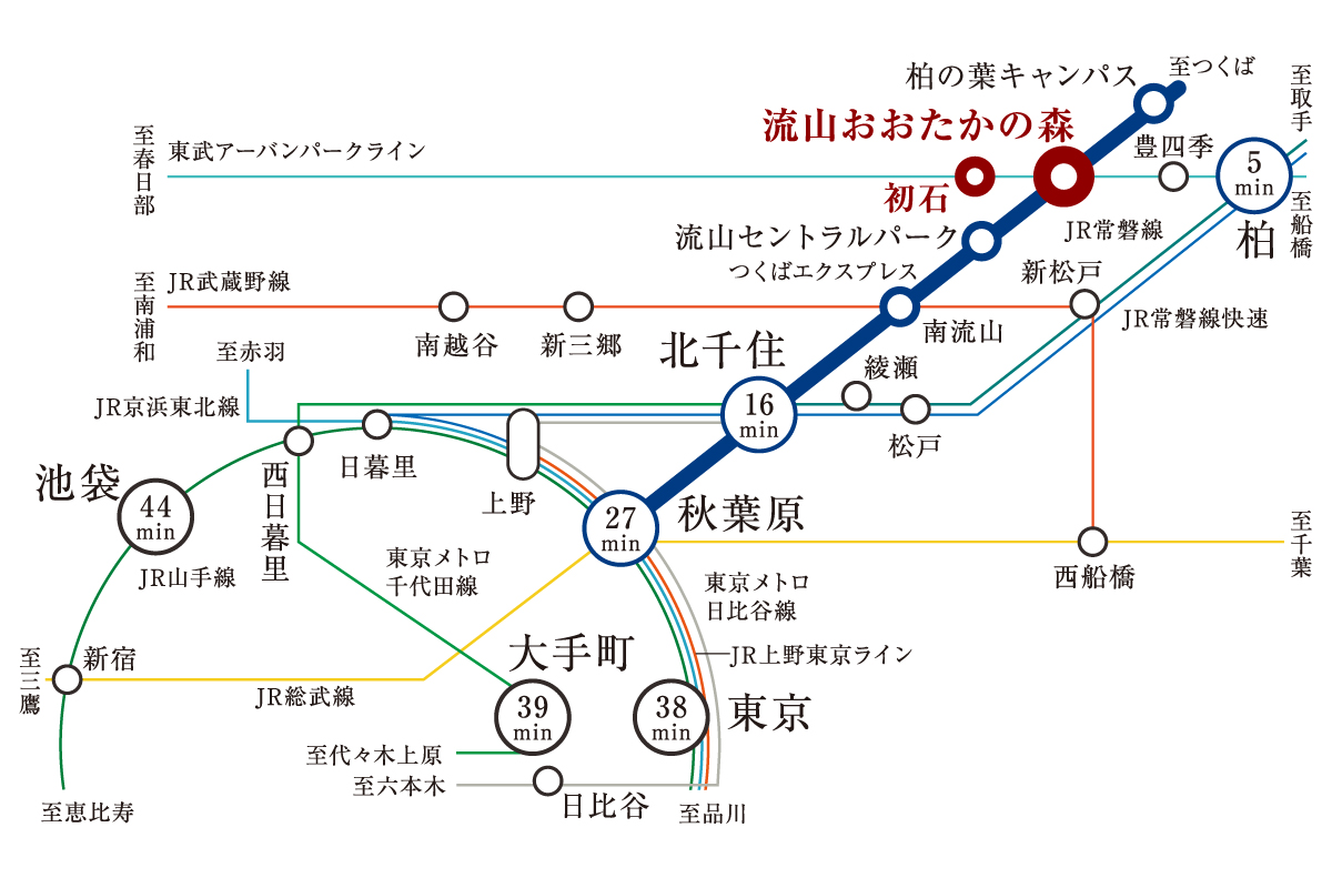 ◆「流山おおたかの森」駅利用で「柏」駅まで直通5分 ・「北千住」駅まで直通16分 ・「秋葉原」駅まで直通27分