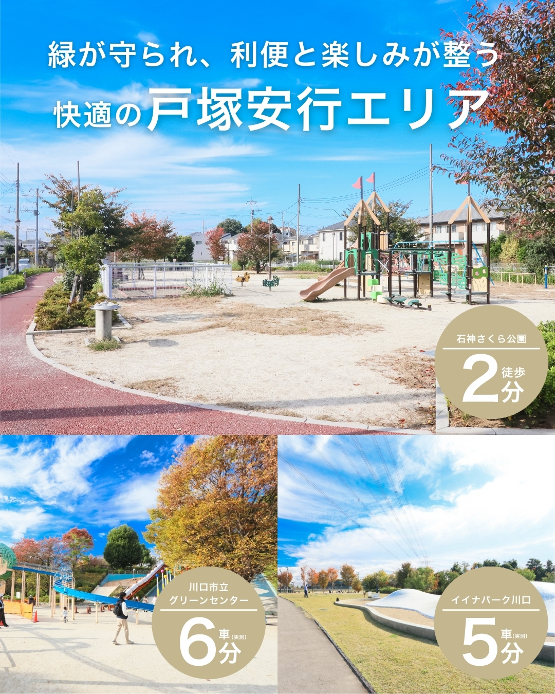 ◆「イイナパーク川口」まで車6分、「川口市立グリーンセンター」まで車8分※実測