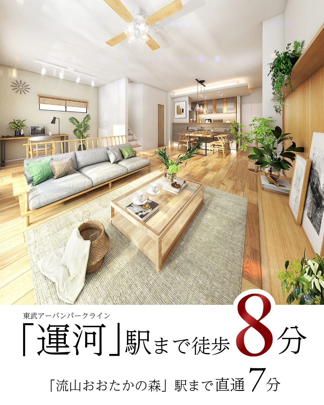 東武アーバンパークライン(急行停車駅・始発利用可能)「運河」駅まで徒歩8分。「流山おおたかの森」駅や「柏」駅やへダイレクトにアクセス可能です。