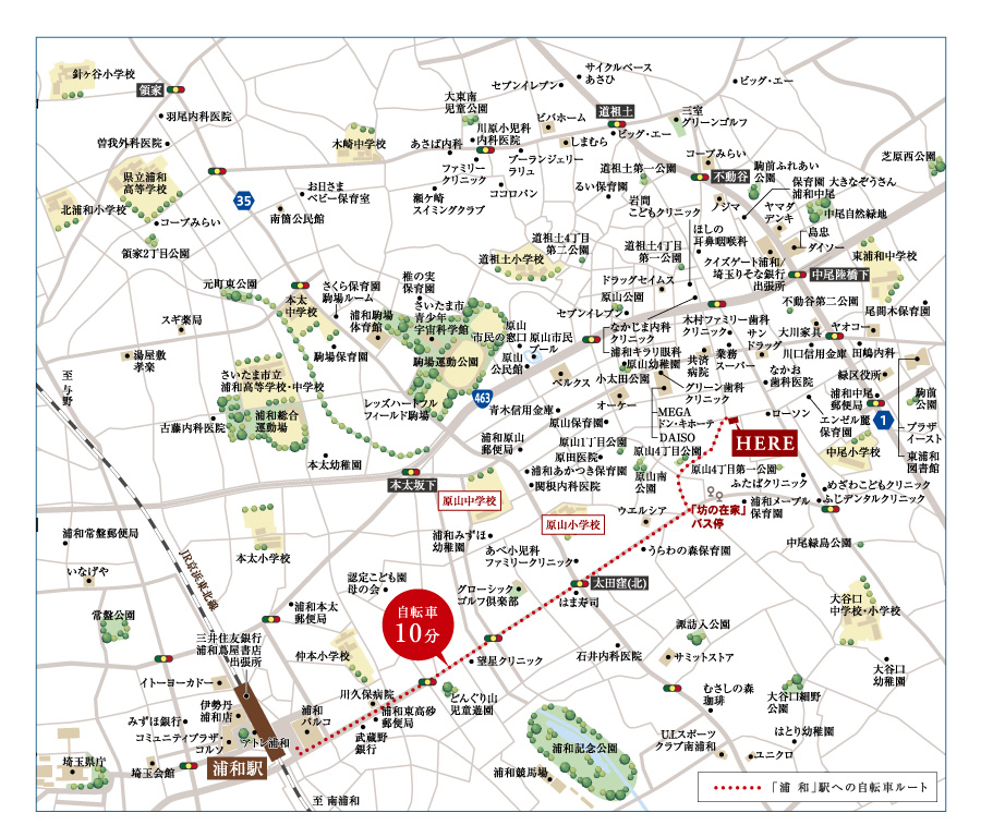 「浦和」駅まで 徒歩31分 / 自転車10分(実測)※