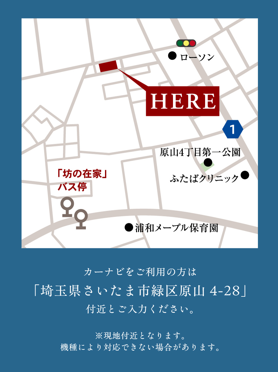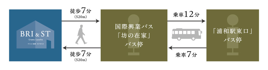 JR京浜東北線・JR東北本線・JR高崎線「浦和」駅までバス12分「坊の在家」バス停まで徒歩7分