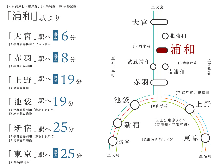 ◆浦和駅利用で「池袋」駅まで19分・「東京」駅まで25分の快適なアクセス