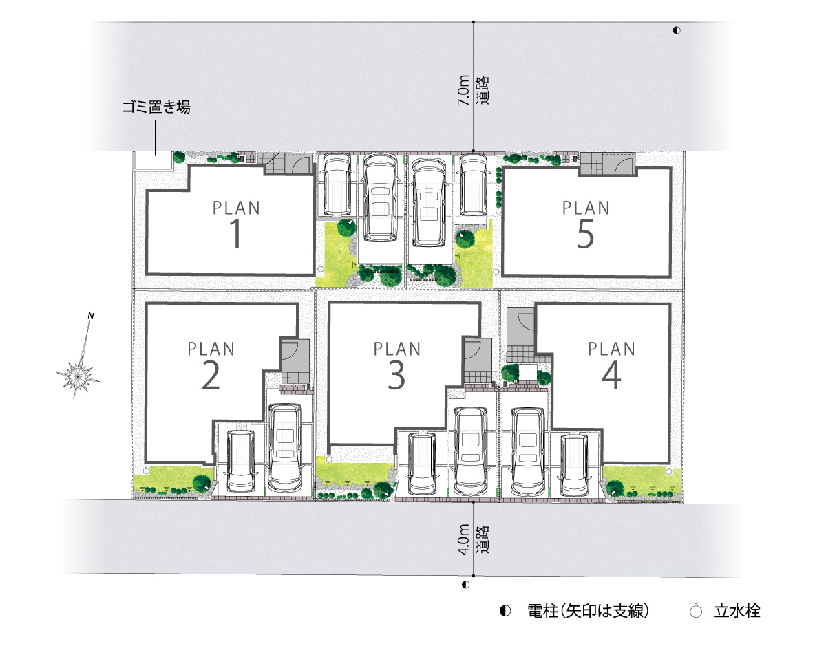◆安心な台地に位置する全5邸