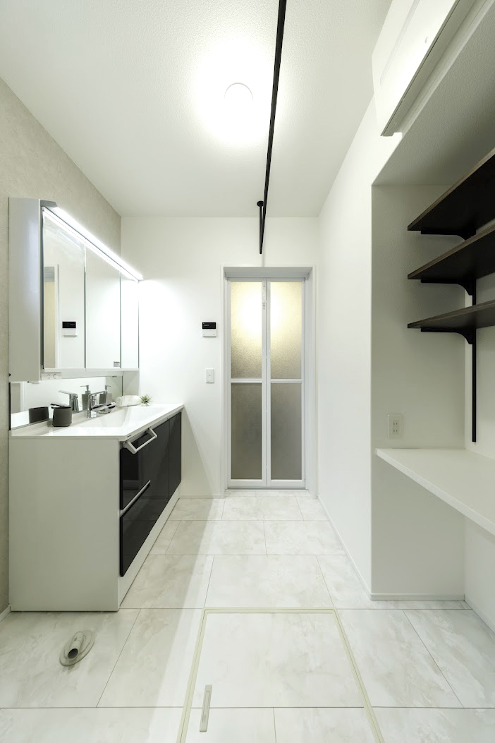 • 洗面所にカウンターと可動棚を備えた家事スペースを設けました。※9号棟/2026年2月撮影