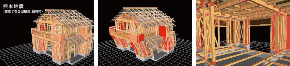 | 過去の大地震を忠実に再現 | 地震の負荷を細やかに分析 | 地震発生時の動きを3Dで可視化 |