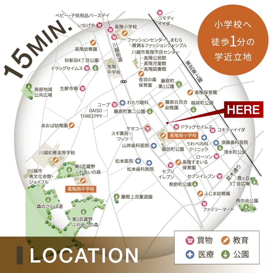 ◆安心と利便が徒歩15分圏に揃うロケーション