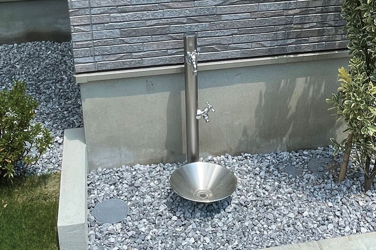 ![]() ピンコロ石敷 | ![]() ロックガーデン | ![]() 立水栓 |