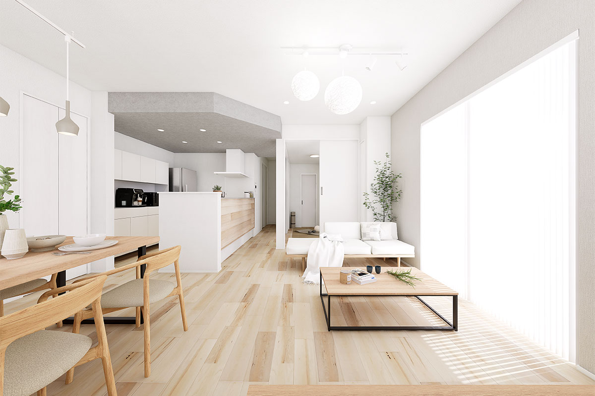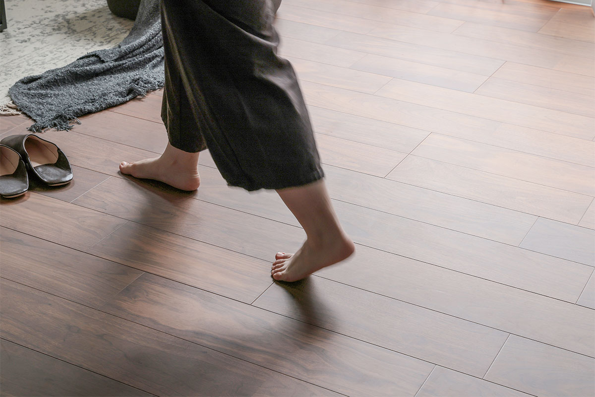 古くから愛されてきた天然樹木を選りすぐった銘樹に磨きをかけたフロア。天然素材のもつ木味や風合いを最大限に引き出し、素足で歩いた時になめらかな触り心地を感じられます。さらに抗ウイルス・抗菌効果を付与し、日常に安心と安全をプラス。
