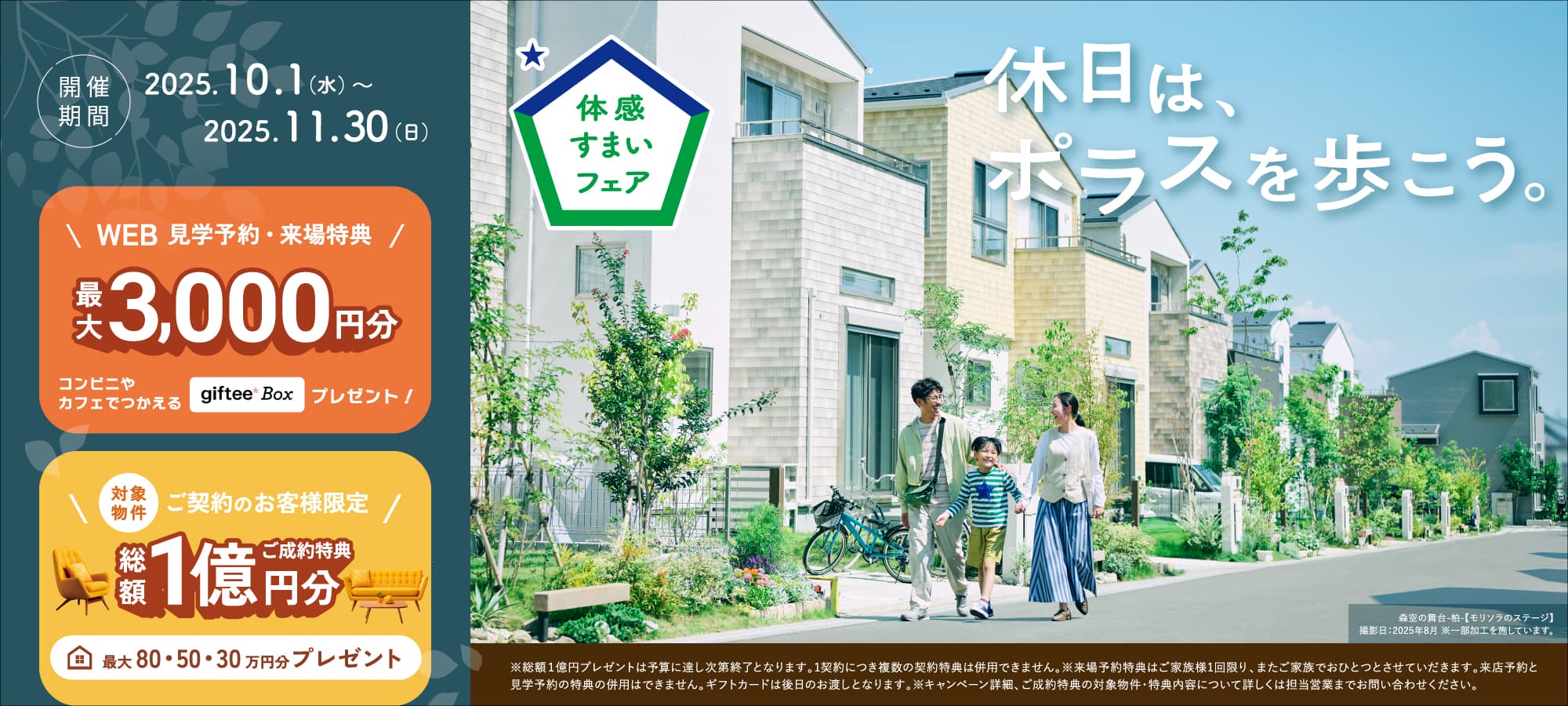 公式HPから見学予約の上ご来場いただいた方には、コンビニやカフェで使える【giftee Box(ギフティボックス)】最大3,000円分をプレゼント!※詳細は見学予約フォームをご覧ください。