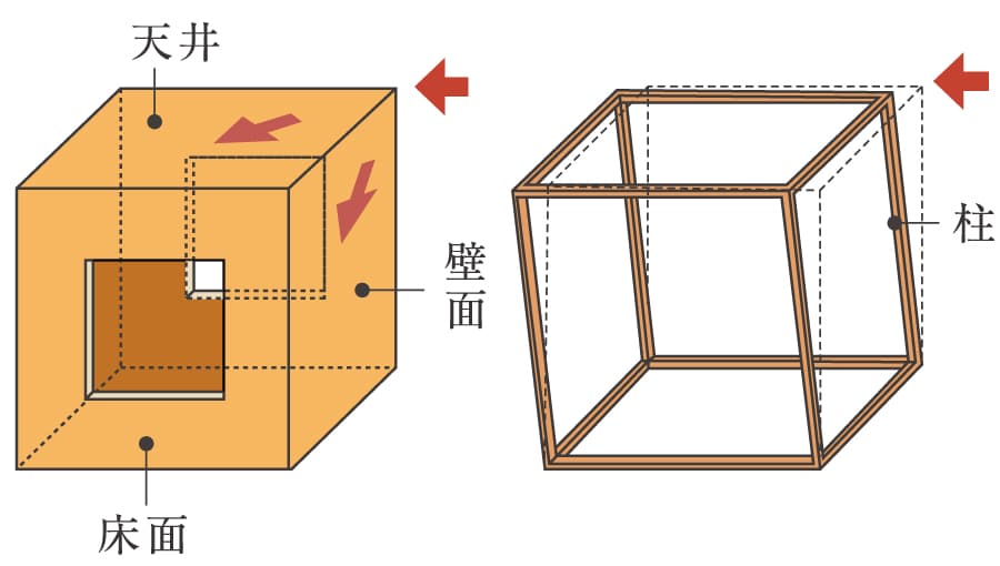 | 検査項目 | 簡易計算 建築基準法施行令46条 | 許容応用力計算 |