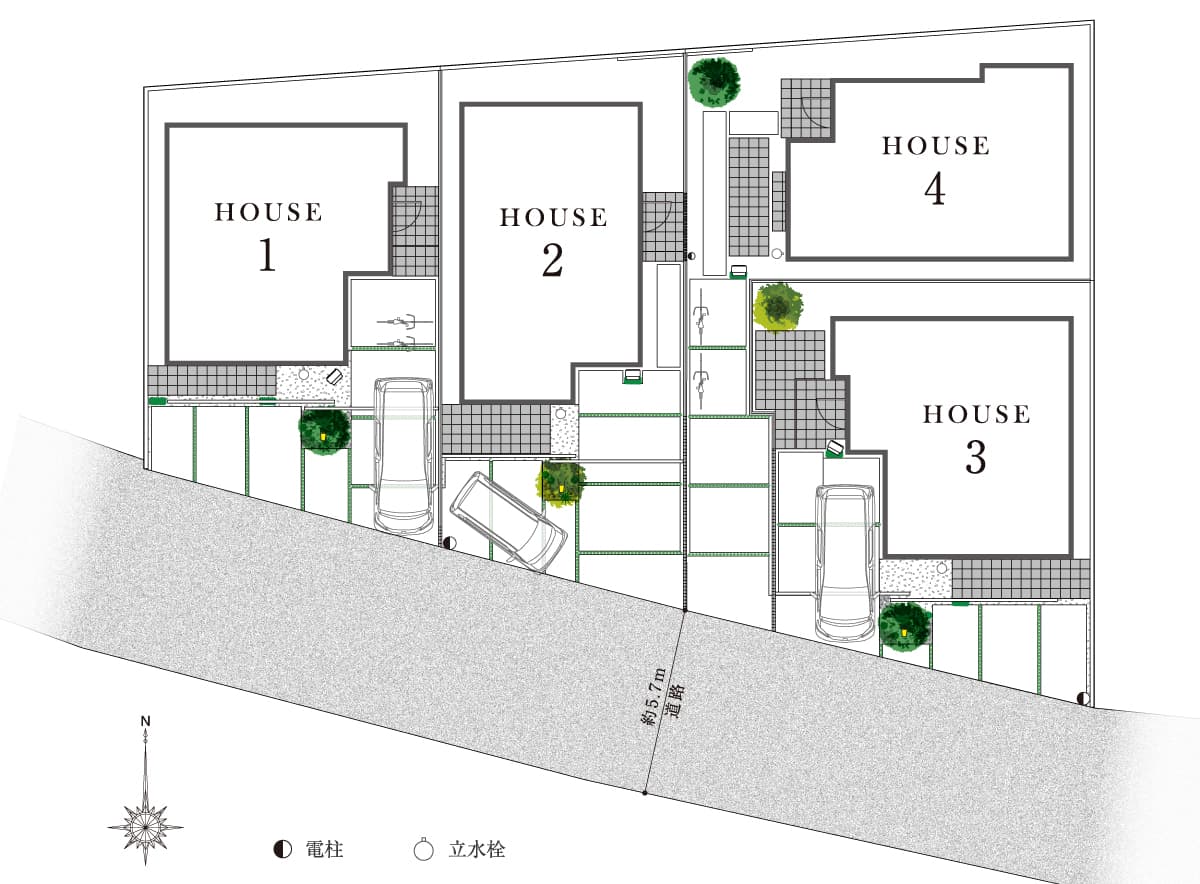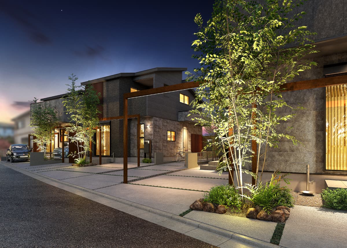 LIGHTING 分譲住宅の住民がガイドラインに沿った協定に基づき、街全体で常夜灯を自動点灯させる取り組みです。防犯性も高め、家族の安心にも繋がります。※照明の数や種類は号棟により異なります。![]() | ![]() |