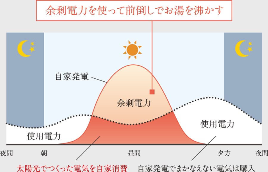 ![]() ※1:補助⾦の正式名称は東京都の「住宅用太陽光発電初期費用ゼロ促進の増強事業」です。補助金適用時のサービス料です。補助金の交付には要件があり、交付されない場合があります。詳しくは、「クールネット東京」サイト内の「住宅用太陽光発電初期費用ゼロ促進の増強事業」ページをご参照ください。※2:初期費⽤として別途追加費⽤がかかる場合があります。月額サービス料の他に、太陽光発電で賄いきれない消費電力や発電しない時間帯の消費電力量に応じた使用料金の支払いが発生いたします。※3:サービス契約期間中の10年間は、売電債権は東京ガスに譲渡されます。(余剰電力は電力会社に売電され、売電収入は東京ガスへ)契約満了後は、月額サービス料もなく全ての電力を自由にご利用いただくことができます。 PV活用モード 太陽光発電の時間帯に積極的にヒートポンプの運転を行い太陽光発電の電気でお湯を作るモードです。太陽光発電の電力を自家消費することで光熱費の節約につながります。 ![]() ■光熱費シミュレーションについて 〇本試算はモデルケースによるシミュレーションであり、実際とは異なります。 〇試算条件:4人家族・94.24㎡・戸建(次世代省エネ基準)のモデル一例です。 〇設備仕様(通常プラン)/ハイブリッド給湯器(リンナイ・シングル・70L・通常モード)、太陽光発電なし 〇設備仕様(当物件)/ハイブリッド給湯器(リンナイ・シングル・70L・PV活用モード)、太陽光発電(定格3.51kW) 〇共通仕様/居室暖房(エアコン)、浴室暖房乾燥機(電気)、ガスコンロ 〇料金プラン/東京ガス暖らんぷらん エコ割・東京電力エナジーパートナー従量電灯B(50A) 〇料金単価:2022年6月時点の単価(燃料費調整額等含む)を適用しており、現在の料金とは異なります。 〇売電単価:太陽光発電の売電単価は0円/kWhとして試算しています。※注意事項:数値は四捨五入しており、実際の光熱費は使用状況により異なります 。機器費・工事費・水道代は含まれません。 ○出典[用途別消費時間割合]建築環境・省エネルギー機構「住宅事業建築主の判断の基準におけるエネルギー消費量計算方法の解説」[年間負荷設定]建築研究所HP「平成28年省エネルギー基準に準拠したエネルギー消費性能の評価に関する技術情報(住宅)」(H30年1月時点) [年間負荷設定]住宅・建築物の省エネルギー基準解説書編集委員会「平成25年省エネルギー基準にした算定・判断の方法及び解説」 |