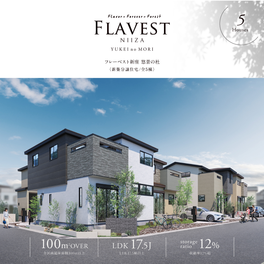 【新発売】JR武蔵野線『新座』駅徒歩20分、自転車5分(※実測)この便利さは想像以上新座で叶える、ゆとりある暮らし◆全5邸◆深い軒のフォルムと落ち着いた外壁が、端正で品格ある街並を形成◆個性と洗練の表情を生み出す、邸宅感を演出するデザイン◆全邸建物面積100㎡超のゆとり。LDK17.5帖以上◆住まいの満足度を高める12.4~15.6%の収納力