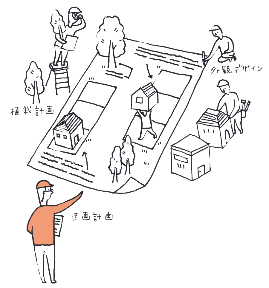 私たちが手がける分譲地にも、ひとつひとつの家だけでなく、街全体が醸し出す表情があり、ここで暮らす人々が永く誇りに思えるような街づくりができないだろうか─これが企画住宅の原点です。
