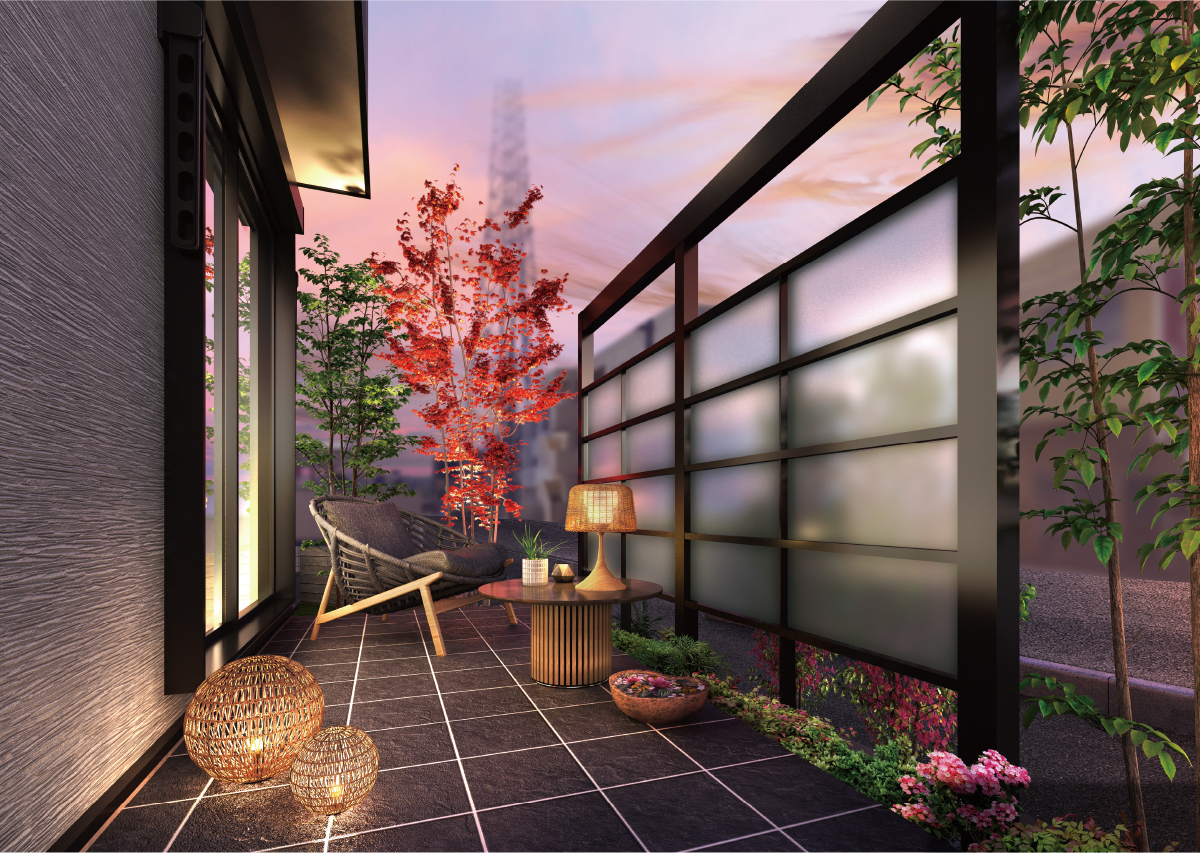 ※SIDE TERRACE完成予想図/掲載のパースは図面を基に描き起こしたもので、実際とは多少異なります。