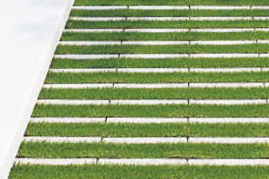 ブロックと緑の芝を交互に配し、リズミカルなボーターデザインを描き出します。