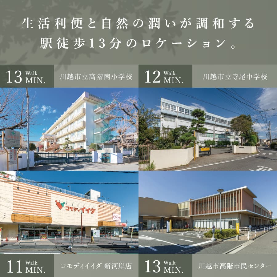 4/4(土) ・4/5(日) 11:00~17:00 ◆上記期間中は現地にスタッフが待機。近くにお立ち寄りの際などお気軽にご来場ください。 (※案内中につき不在の場合がございます) ◆事前のご予約で、上記期間外も現地ご見学できます。予約フォーム、またはお電話よりお気軽にお問い合わせください。 「新河岸」駅 徒歩13分 / 全14邸 石と木のぬくもりが息づく自然と共存する街並風景 暮らしやすさと落ち着きを両立したロケーション ■回遊できる街区内開発道路 ■カースペース2台標準 ■宅配ボックス付き機能門柱 / サイクルスペース ■LD床暖房 / 省エネ給湯器標準搭載 ◆天井高2.7m、サッシ高2.2mの開放感あるリビング空間 ◆グッドデザイン賞とキッズデザイン賞を受賞した「灯かりのいえなみ協定(R)」を採用 |