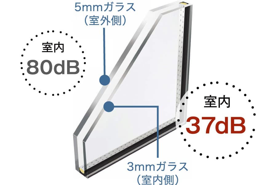 ハイブリッド給湯・暖房システム ガスと電気の特性を併用したハイブリッドな給湯・暖房システム。お湯を電気で効率よく沸かしたり、素早く部屋を暖めて快適にしながら光熱費の削減を実現します。「エコワン」(70Lタイプ) | ![]() | “遮音効果”をアップした 異なる厚さのガラスを組合せることによって振動による共鳴現象を打ち消し、高い遮音効果を発揮します。交差点レベルの騒音も静かな公園レベルにまで軽減してくれます。異厚複層ガラス ※7.8.14号棟のみ | ![]() 騒音レベル80dB、 周波数1,600Hzの場合の防音効果 |