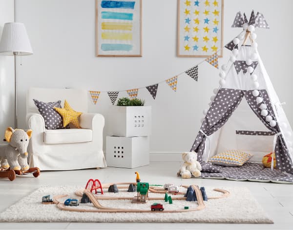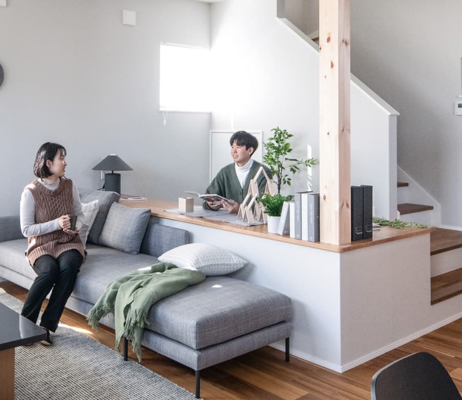 家族との心地良い距離感を感じながら 自分時間を過ごせる舞台空間 リビングの一角に小上がりになったステージリビングを計画。 段差で空間をゆるやかにゾーニングすることで、自分の時間を楽しみながらリビングやキッチンにいる家族とコミュニケーションをとることができます。柔らかなテキスタイル敷きで子どもの遊び場やお昼寝スペースにも使える秘密基地のような空間です。 ![]() 空間の印象を引き締めるアクセントクロスをステージリビングの一部に設えました。 ※モデルハウス2号棟/2026年2月撮影 | ![]() ※写真はイメージです。 |