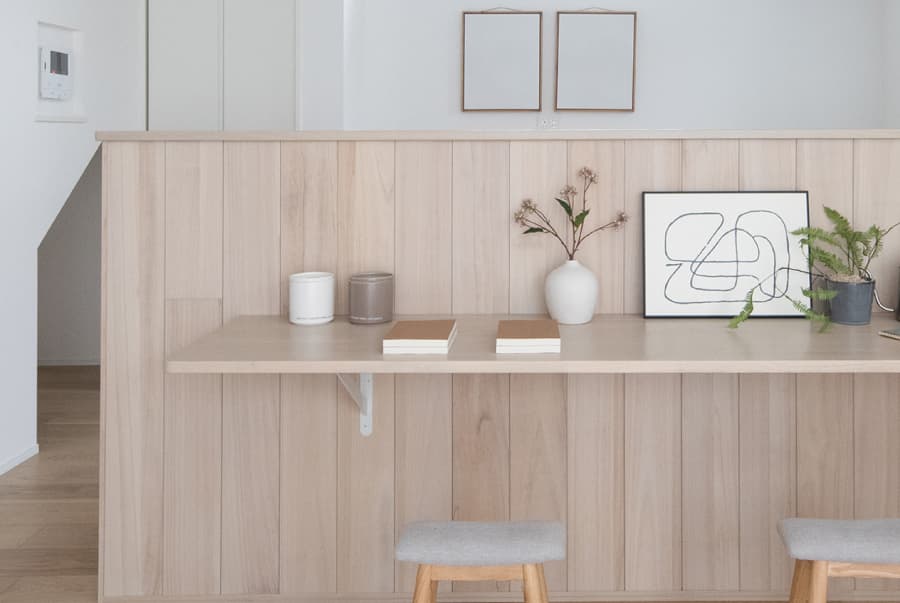 | リビングと一体的な大空間で過ごす 多目的なアトリエのある住まい。 | アンティークな趣きをプラスする桐壁に癒される大空間のリビングの延長に 家族の成長や暮らしに合わせて使えるアトリエ空間を創出。 親の目が届くキッズスペースや、家族の気配を感じながら仕事をする書斎など 暮らしの幅を広げてくれる可能性にあふれた住まいです。 |