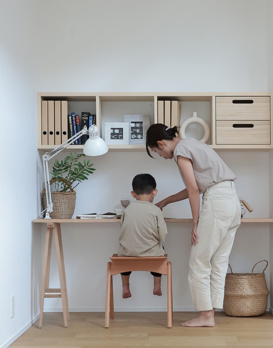 ![]() | 柔らかなテキスタイルフロア敷きの空間をリビングの隣にレイアウト。戸を開閉することで、続き間と独立した居室を使い分けることができ、親の目線が届く子どもの遊び場や、客間や書斎、家事室などアイデア次第で暮らしに合わせて使い方が広がるプラスワンルームです。 How to use