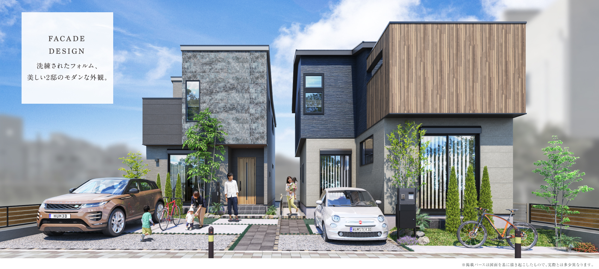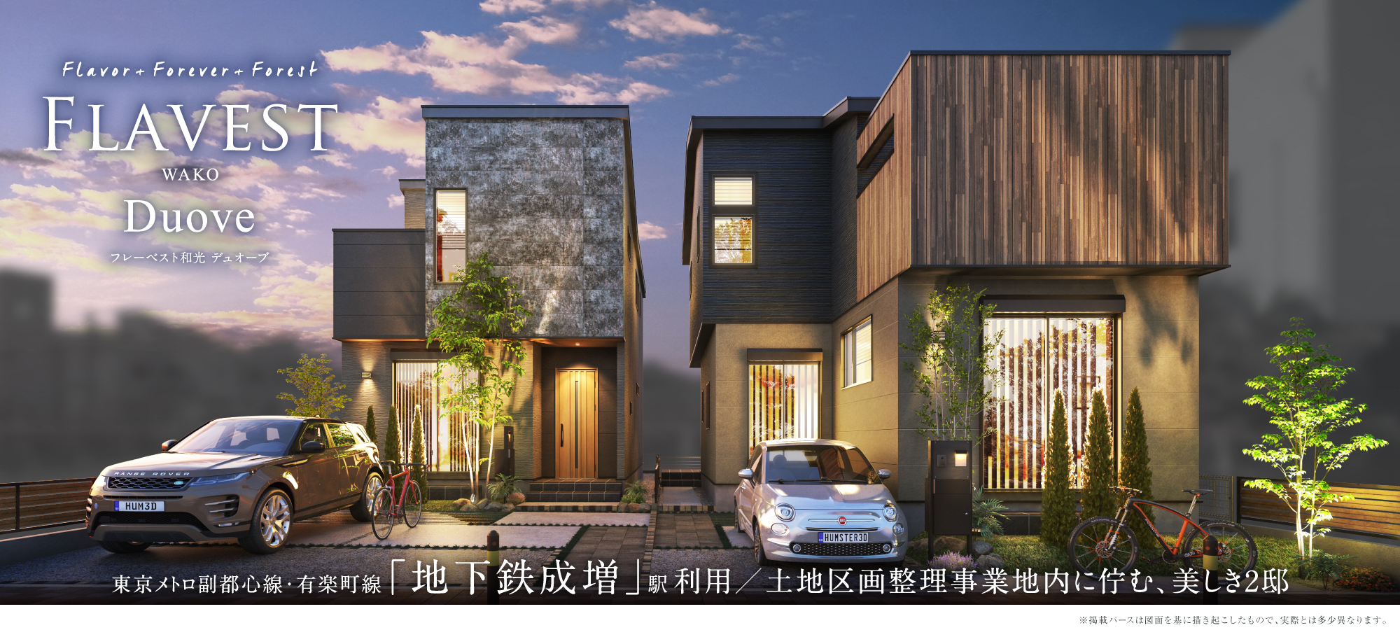 土地区画整理事業により整えられた、端正で美しい街並の中に誕生する2つの邸宅「フレーベスト和光 デュオーブ」。
